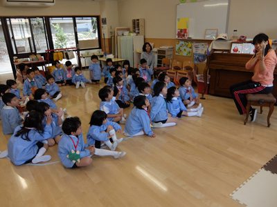 対面式です。対面式といっても一緒に絵本を観たり歌を歌ったり、