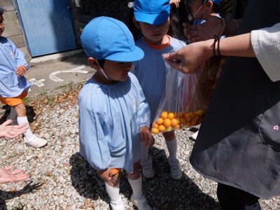 だいぶ以前に幼稚園の畑があった場所には、前々園長先生が植えた金柑がなっています。
