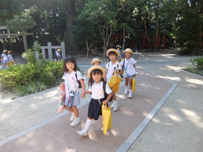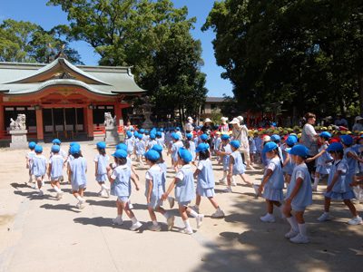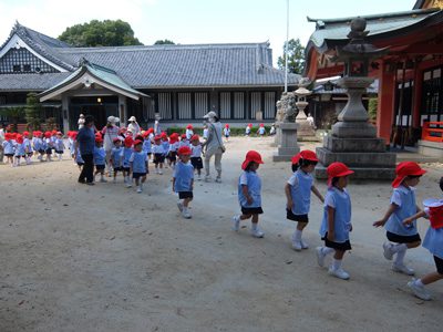 境内から園舎に戻るのに運動会を意識してしっかりと整列して歩いてみました。