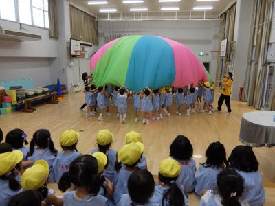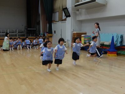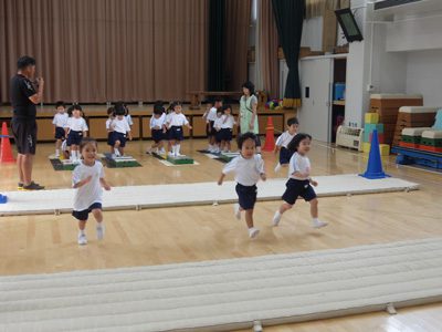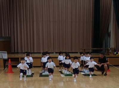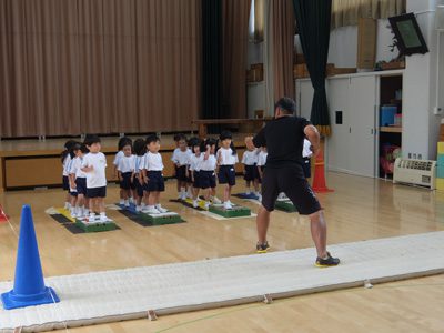 今日は年少さんが運動遊びの先生による体育遊びの日です。