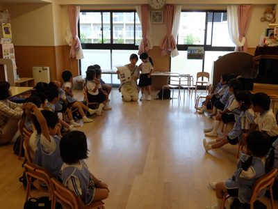 年少さん年中さんも先生に助けてもらいながらも夏休みの思い出を話してくれていました。