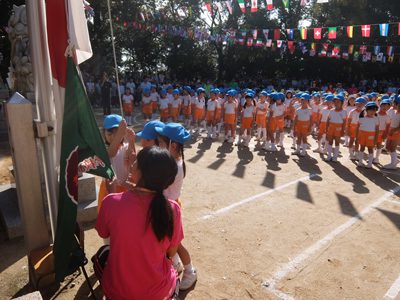 開会式では年長さんは国旗掲揚を手伝ってくれました。