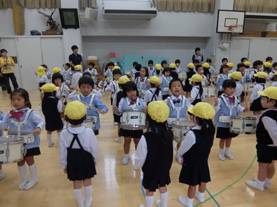 年中さんはこれから一年かけて少しずつマーチングを練習していきます。