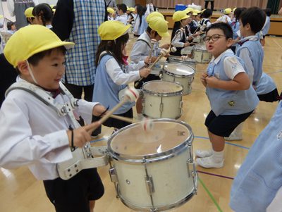 ドラムマーチのリズムを年長さんから教えてもらいました。