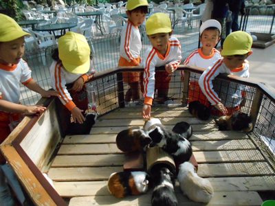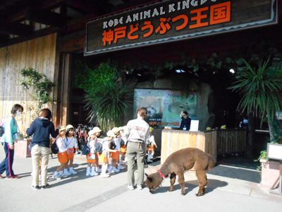 大型バスに乗って、神戸どうぶつ王国に行きました。