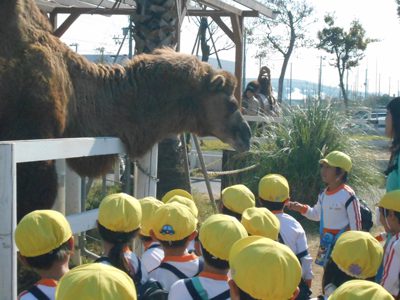 大型バスに乗って、神戸どうぶつ王国に行きました。