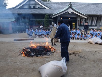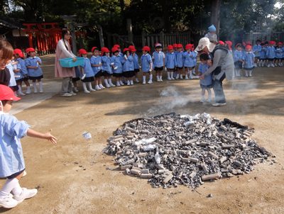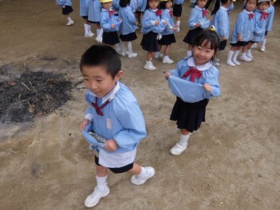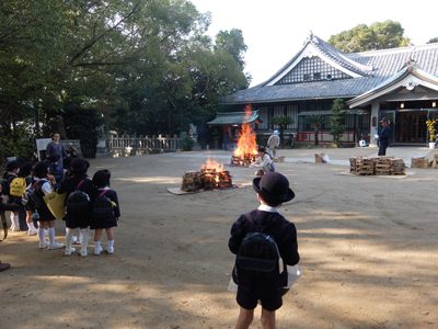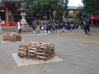 子ども達は登園すると門には真っ直ぐには向かわず焚火を見ていました。