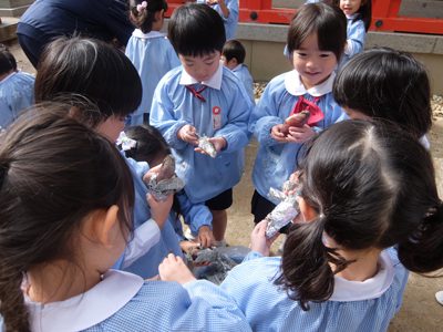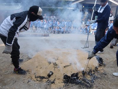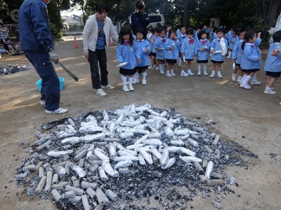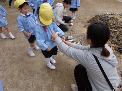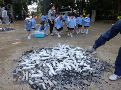 年長さんは自分で焼き芋を取りましたが、熱くないか確かめながら手にしていました。