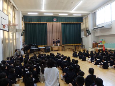 今日は音楽会の予行のため全園児が体育館に集まりました。