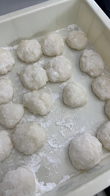 「丸くするのがむずかしい~!」と苦戦しながらも、一生懸命こねて丸めました。