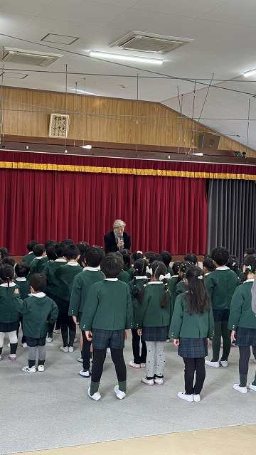 始業式では、園長先生からのお話があり、子どもたちは真剣な表情で耳を傾けていました。これから始まる新しい一年に、期待と少しの緊張が入り混じった様子も見られ、成長の節目を感じる時間となりました。