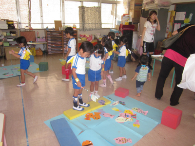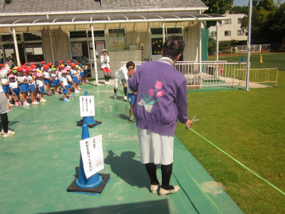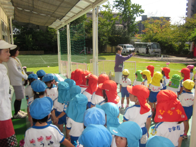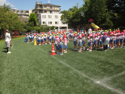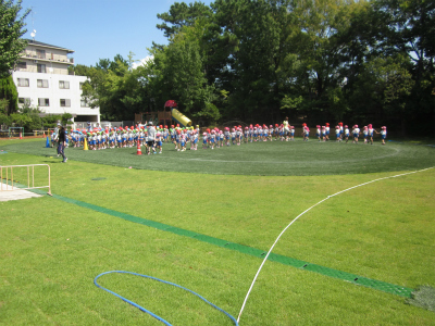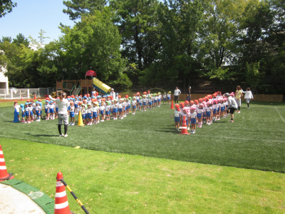 芝生の感覚を足の裏で感じながら、元気に外遊びを行いました!