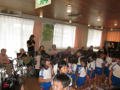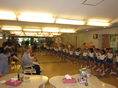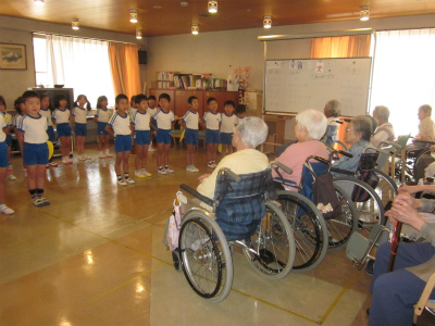 敬老の日にちなんで、年長組が老人ホーム“エバーグリーン”へ行きました。