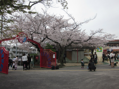 本日、桜が満開の中で入園式が行われました。