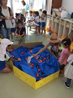 金魚すくいやゴルフ遊び、みんな興味津々です。