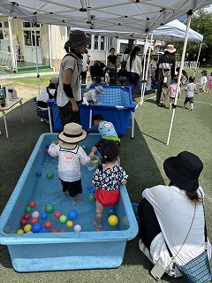 お友だちと一緒に水鉄砲で的当てをしたり、ふわふわと飛んでいくシャボン玉を追いかけたり、元気にビニールプールでちゃぷちゃぷ遊んだり…