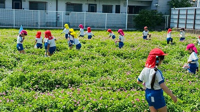 お花で冠を作ったり、れんげを集めて花束を作ったりと、自然の中でたくさんの発見と笑顔があふれるひとときになりました。