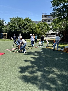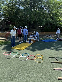 小曽根幼稚園の年長さんやほかの幼稚園や小学校も来ていたので一緒にワイワイしています