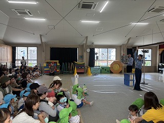 おまわりさんが幼稚園に来てくださり、交通安全教室を開いてくださいました!