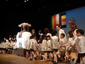 お誕生をお祝する「花まつり:」が神戸文化ホールで行われ参加しました。