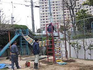 今までの大型遊具は、毎年点検と補修を繰り返し大切に使用して
