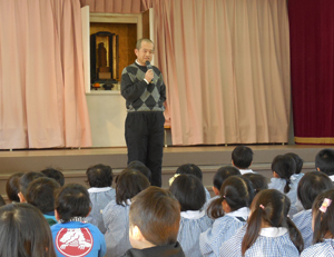 全員で集まり、園長先生のお話を聞きました。